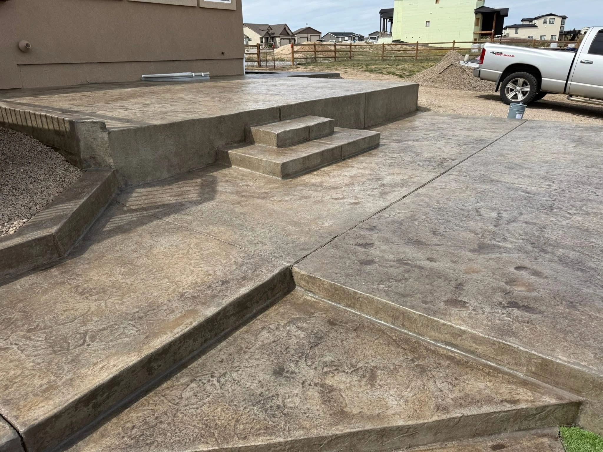 Residential, tear-out & replacement, color & stamped decorative, flat work, foundation, driveways, patios, sidewalks, curb, decorative curb, color concrete, monolithic pads, hot tub pads, shed, landscaping and masonry work & fire pits or walls. Everything Concrete